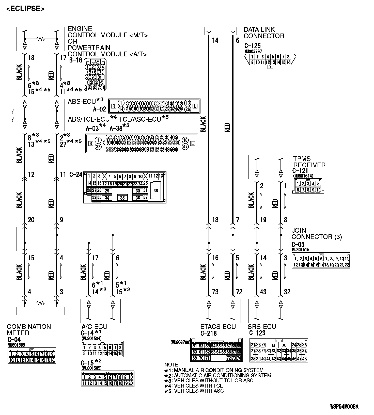 - The connector may be defective [poor connection of joint connector (3) [ECLIPSE], convertible top control module [ECLIPSE SPYDER] or ABS-ECU [vehicles without TCL or ASC] or ABS/TCL-ECU [vehicles with TCL] or TCL/ASC-ECU [vehicles with ASC] connector]
