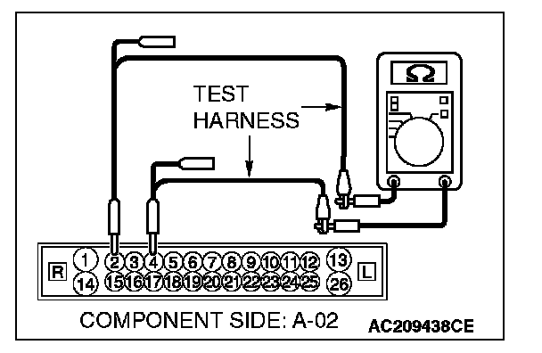 NO : If either of the resistances measures more than 2 ohms or all the resistances measure more than 2 ohms, repair the wiring harness between intermediate connector C-26 and the ABS-ECU [vehicles without TCL or ASC] connector A-02 or ABS/TCL-ECU [vehicles with TCL] connector A-03 or TCL/ASC-ECU [vehicles with ASC] connector A-38.
