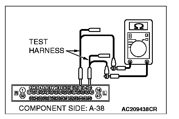 7. Measure the resistance between TCL/ASC-ECU [vehicles with ASC] connector A-38 (terminals 13 and 15).
