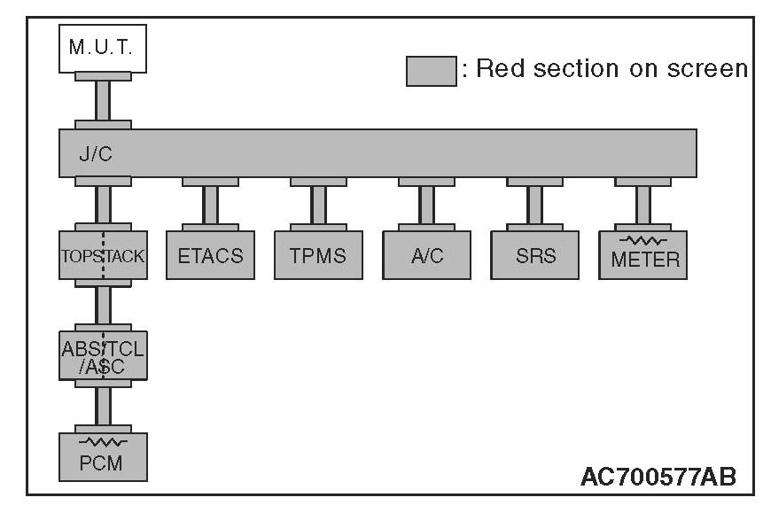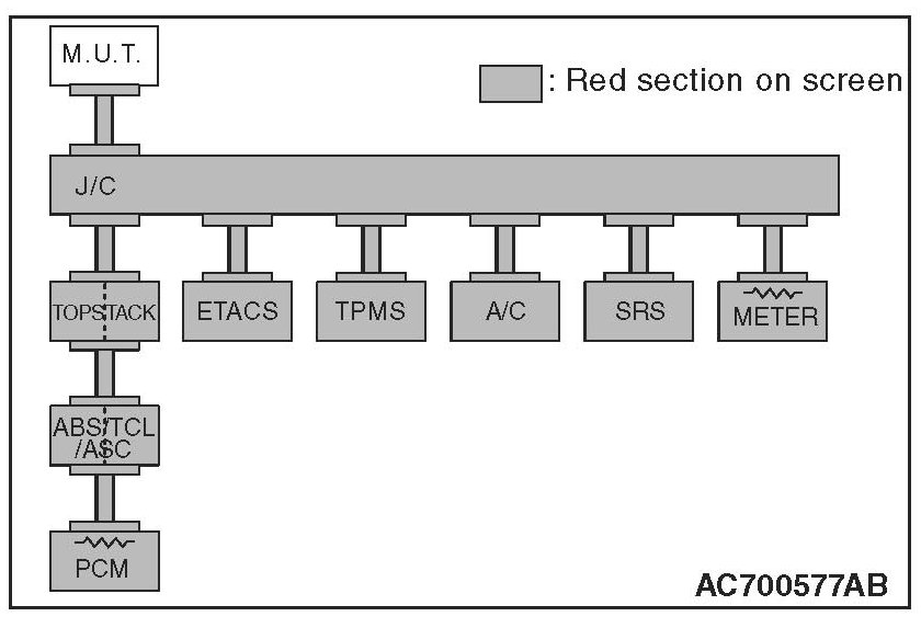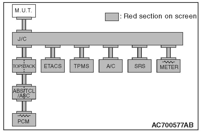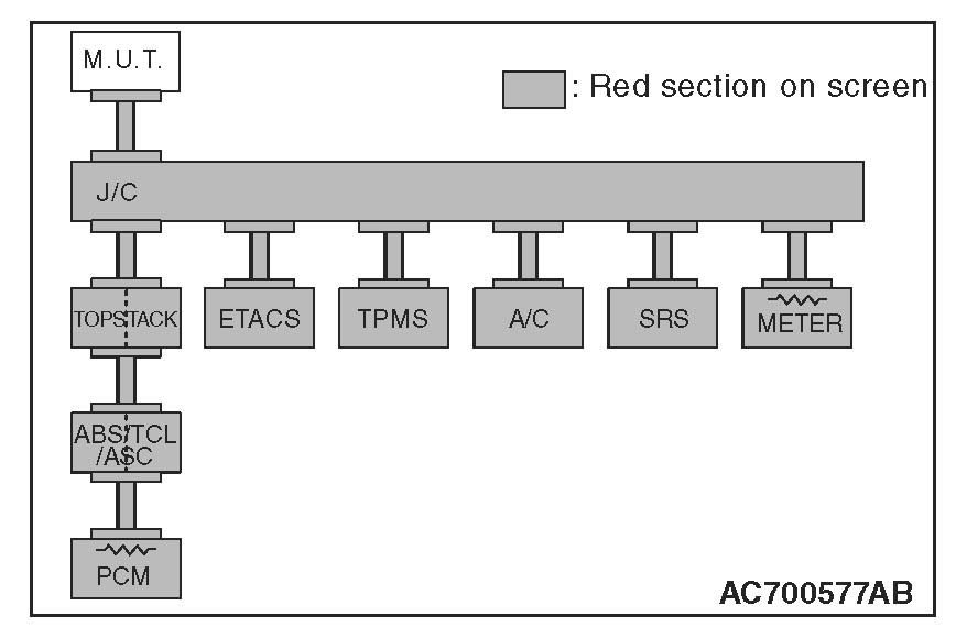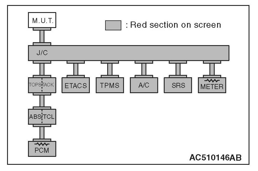 2. Diagnose CAN bus lines, and check if scan tool MB991958 screen is as shown in the illustration.
