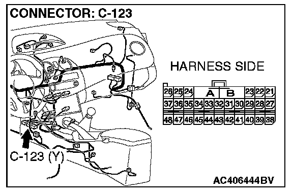 STEP 5. Using scan tool MB991958, diagnose the CAN bus line (Disconnect SRS-ECU connector C-123, and check the supplemental restraint system).