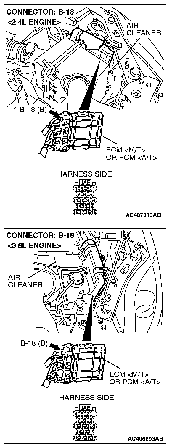 1. Disconnect ECM connector [M/T] or PCM connector [A/T] B-18.