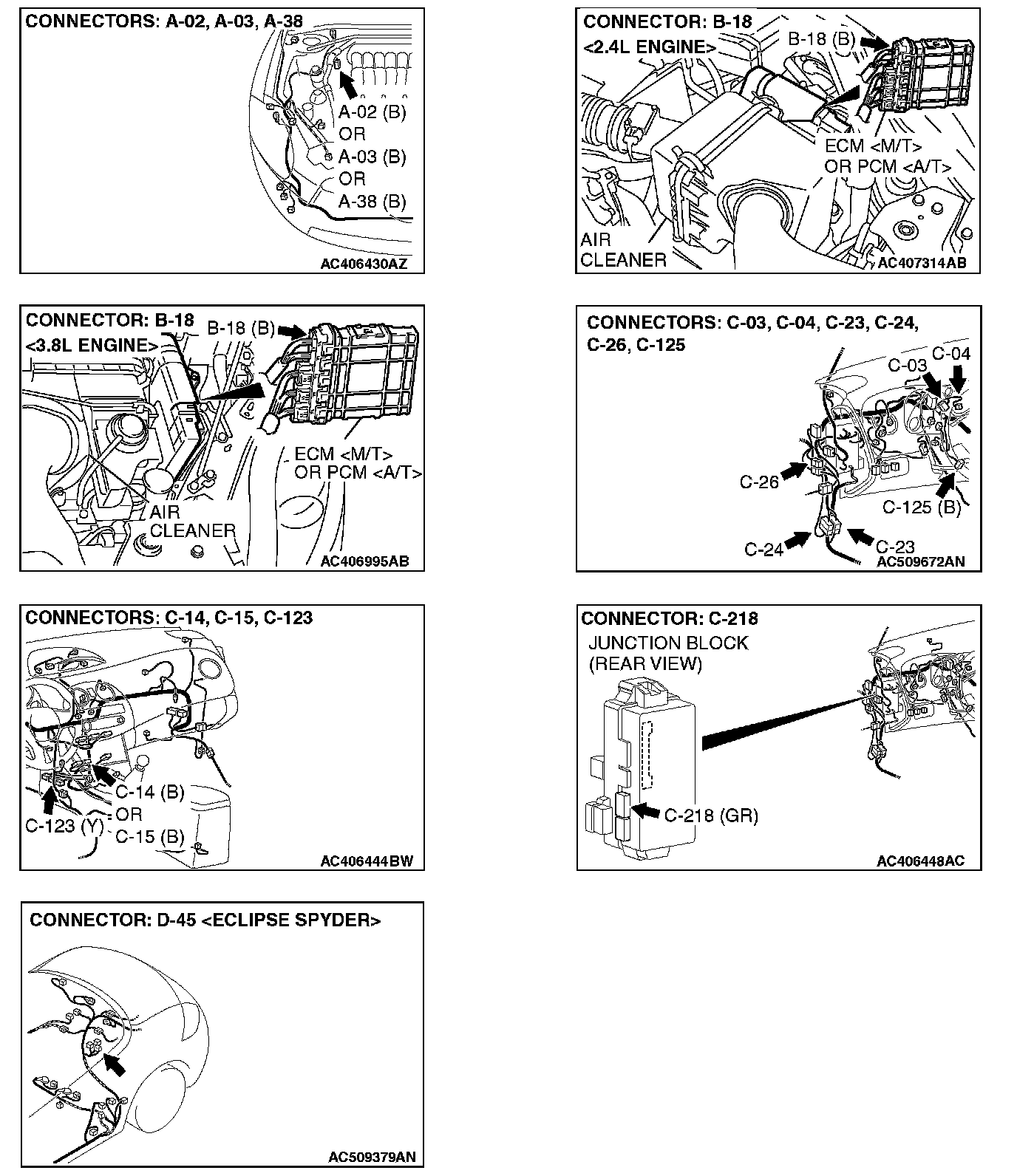 STEP 1. Check joint connector (3) C-03 and intermediate connector C-24 [ECLIPSE] or C-23 [ECLIPSE SPYDER].