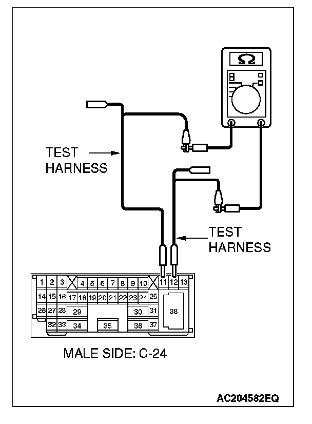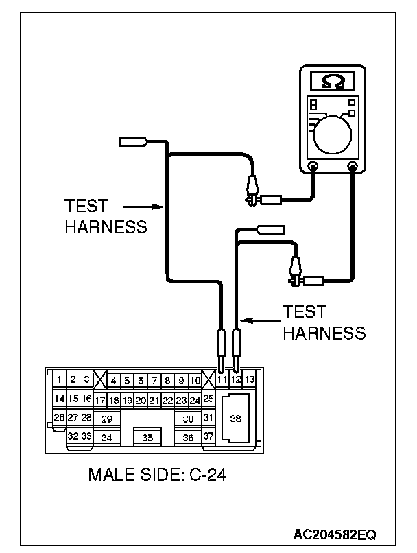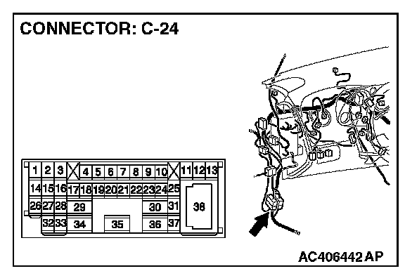 2. Disconnect intermediate connector C-24, and measure the resistance at the male side (at front wiring harness side).