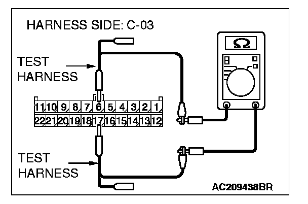 3. Measure the resistance between joint connector (3) terminals 6 and 17.