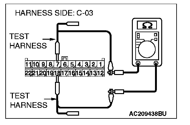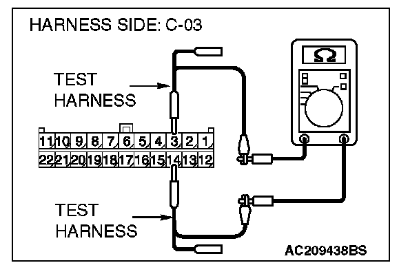 2. Disconnect joint connector (3) C-03, and measure the resistance at the wiring harness side of joint connector (3) C-03.