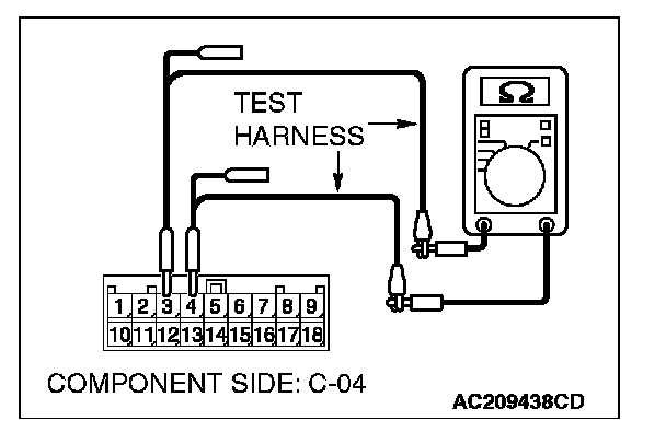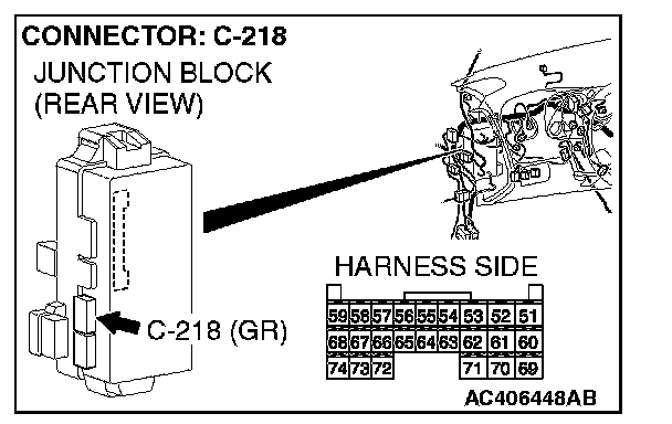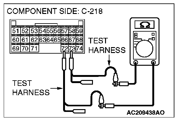2. Disconnect ETACS-ECU connector C-218, and measure the resistance at the component side of ETACS-ECU connector C-218.