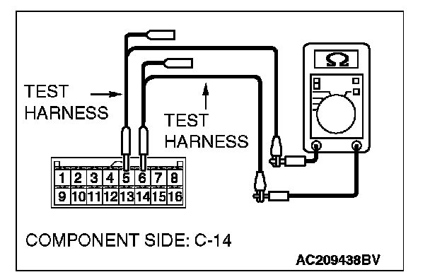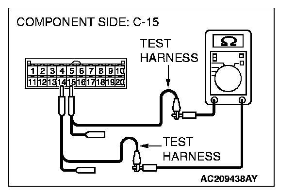 4. Measure the resistance between A/C-ECU connector terminals 14 and 15. [automatic air conditioning system]