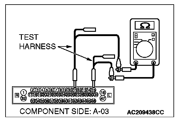 4. Measure the resistance between ABS/TCL-ECU connector A-03 (terminals 11 and 15). [vehicles with TCL]