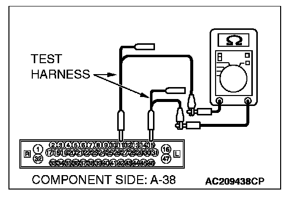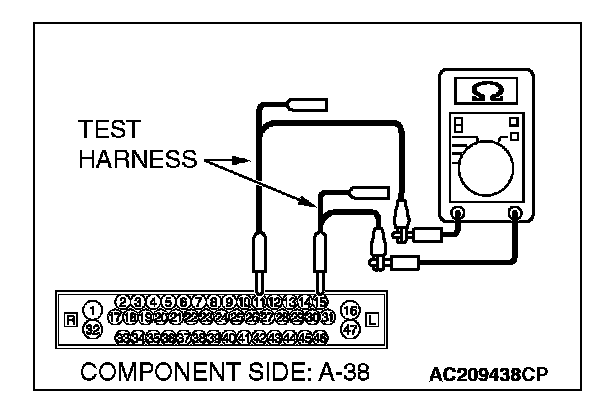 5. Measure the resistance between TCL/ASC-ECU connector A-38 (terminals 11 and 15). [vehicles with ASC]