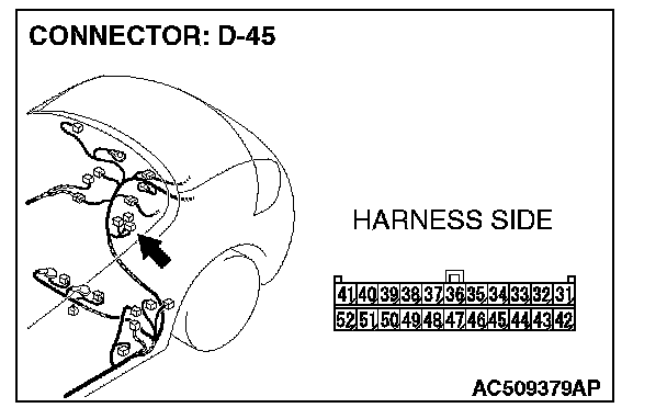 2. Disconnect convertible top control module connector D-45, and measure the resistance at the component side of convertible top control module connector D-45.