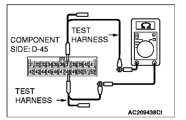 3. Measure the resistance between convertible top control module connector D-45 (terminals 37 and 38).