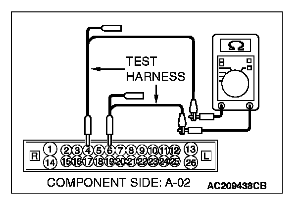 3. Measure the resistance between ABS-ECU connector A-02 (terminals 4 and 6). [vehicles without TCL or ASC]