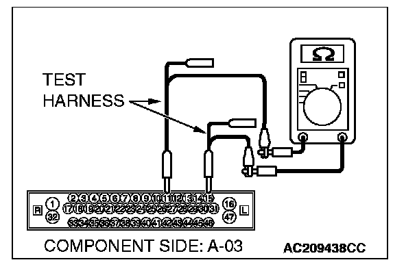3. Measure the resistance between SRS-ECU connector terminals 32 and 43.