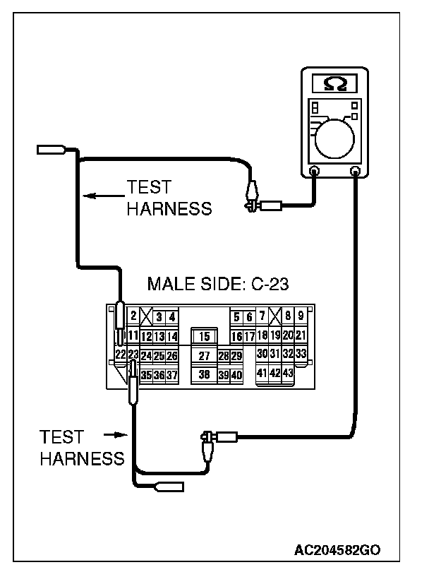 3. Measure the resistance between intermediate connector C-23 (terminals 22 and 23).
