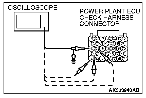 2. Connect the oscilloscope probe to each check harness connector terminal to analyze each cylinder: