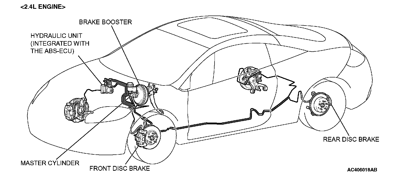 3. 14-inch rear solid disc brakes are used. [2.4L engine]