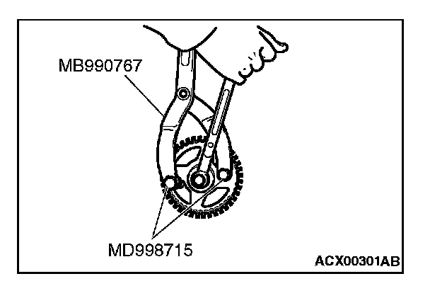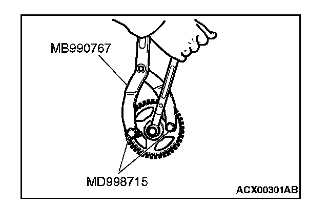 1. Use special tools MD998715 and MB990767 in the same way as during removal to install the camshaft sprocket.