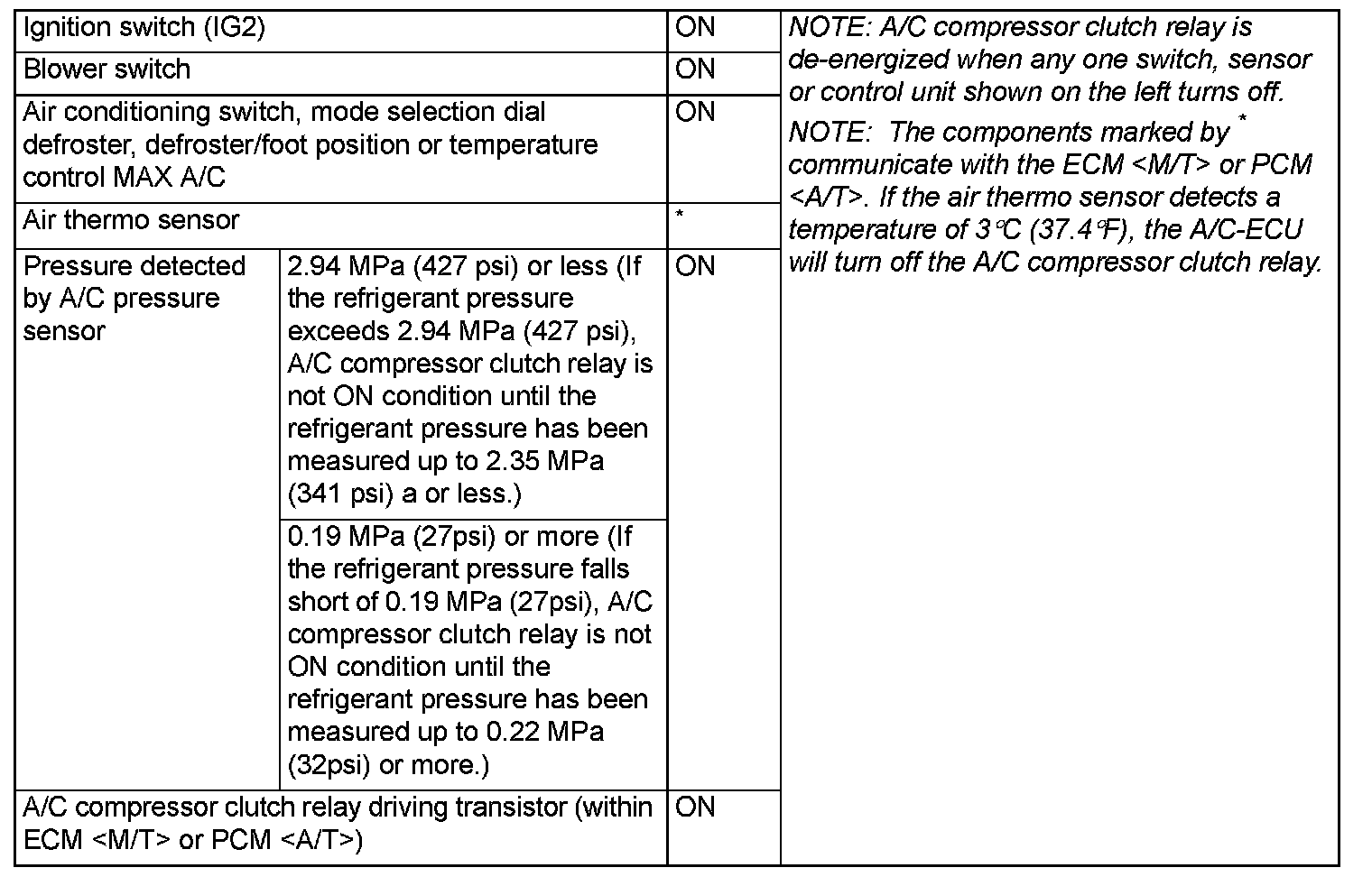 A/C Compressor Clutch Relay ON Conditions