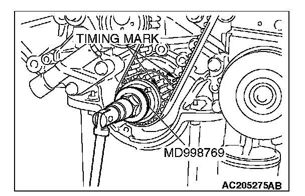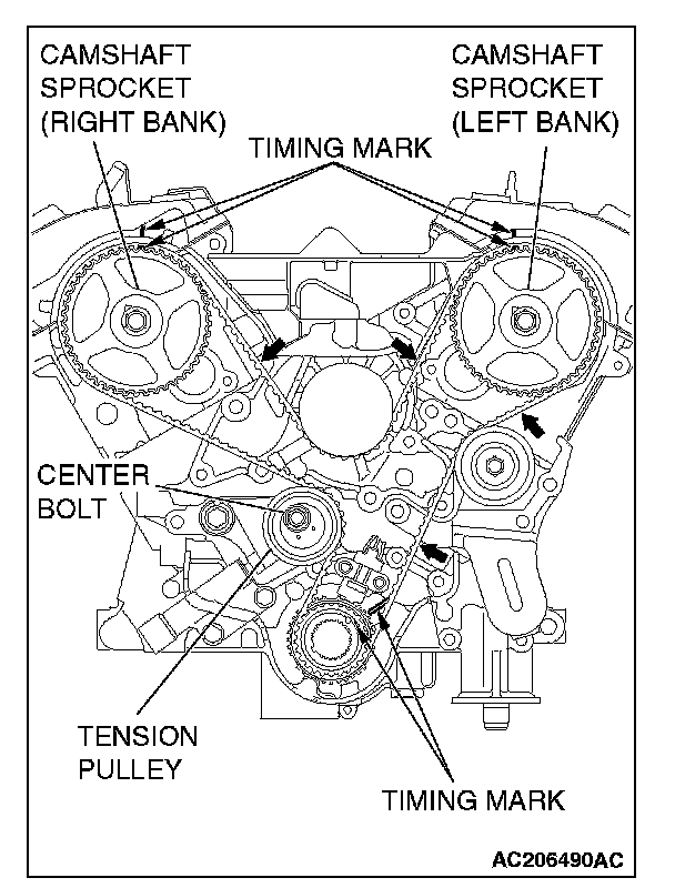 2. Install the timing belt by the following procedure so that there is no deflection in the timing belt between each sprocket and pulley.