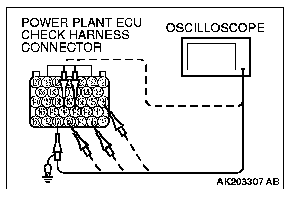 2. Connect the oscilloscope probe to each check harness connector terminal to analyze each cylinder: