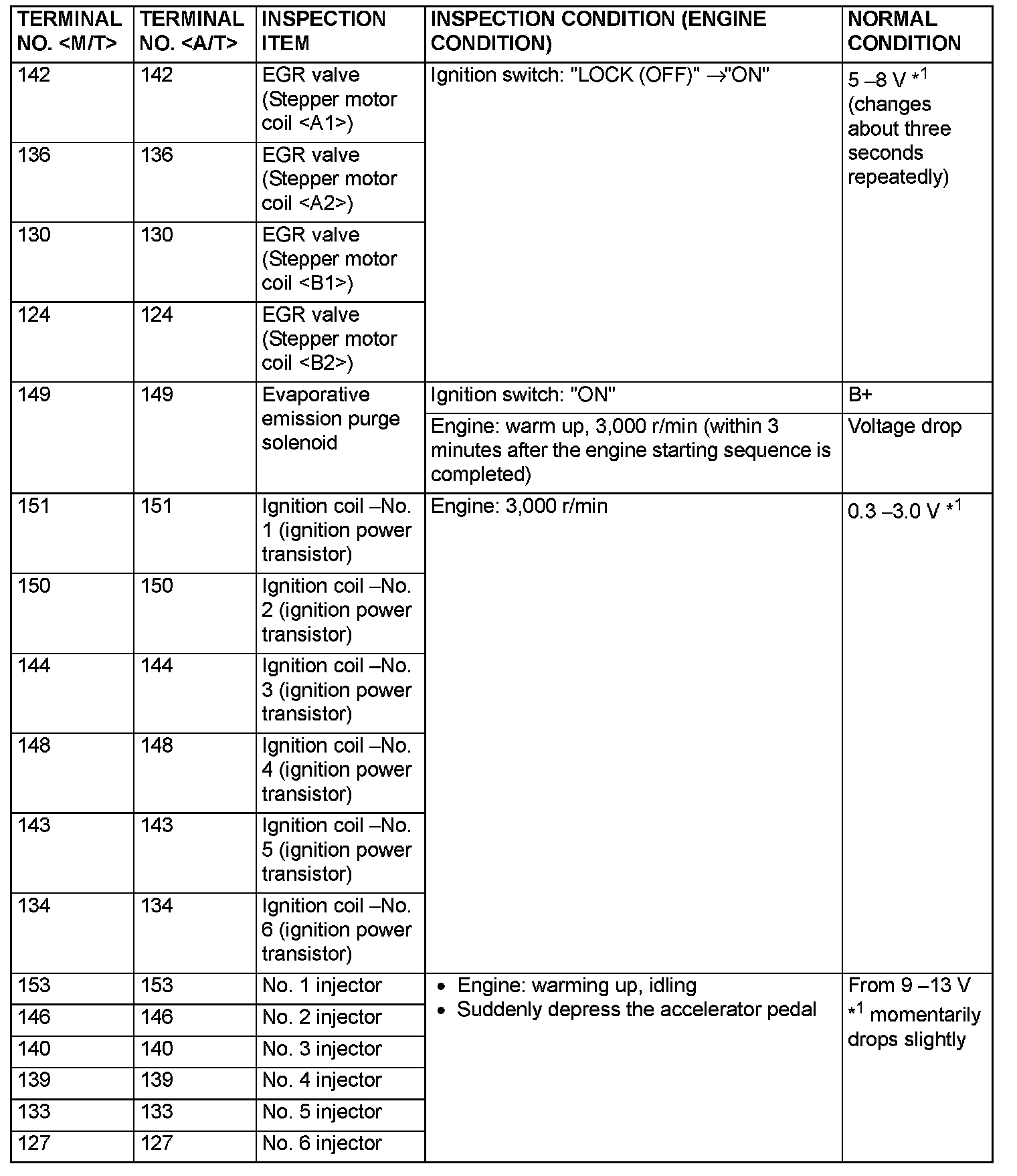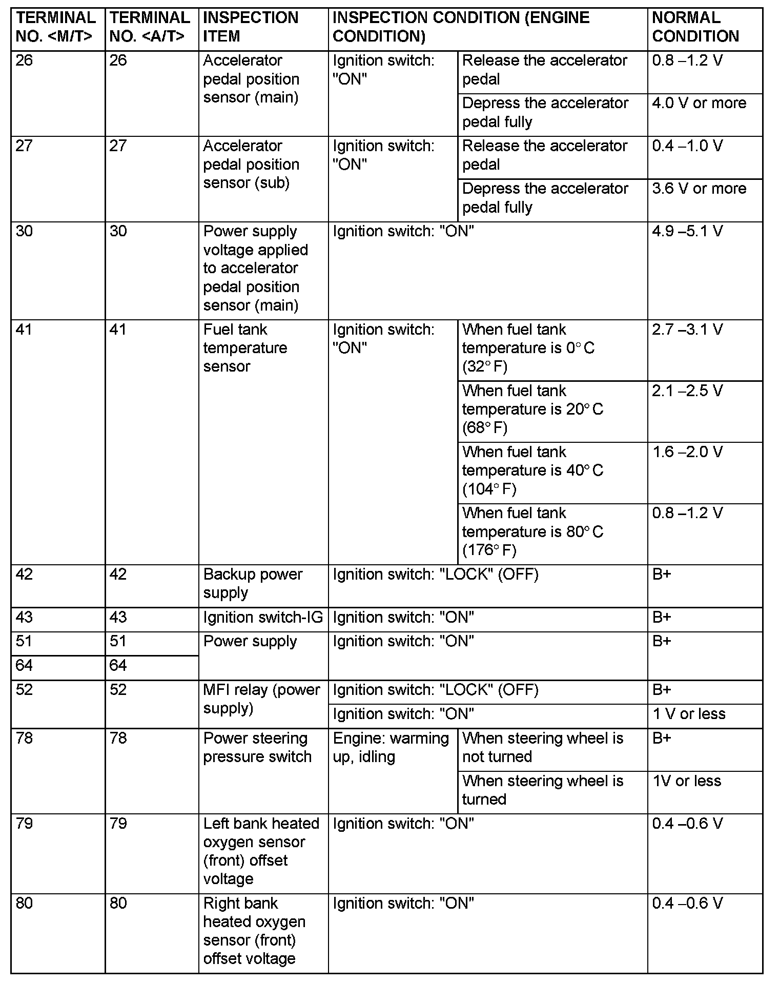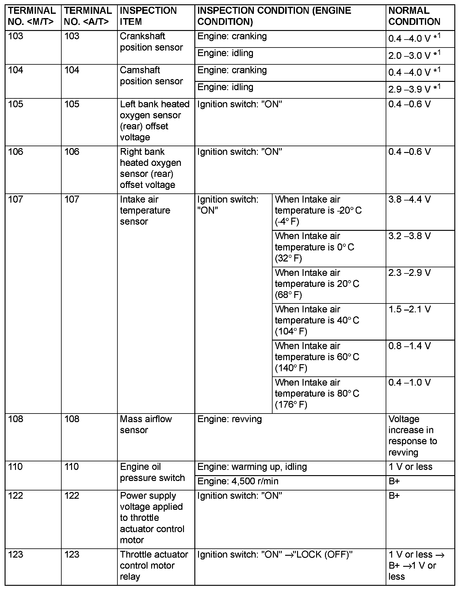 Terminal Voltage Check Chart (Part 1):