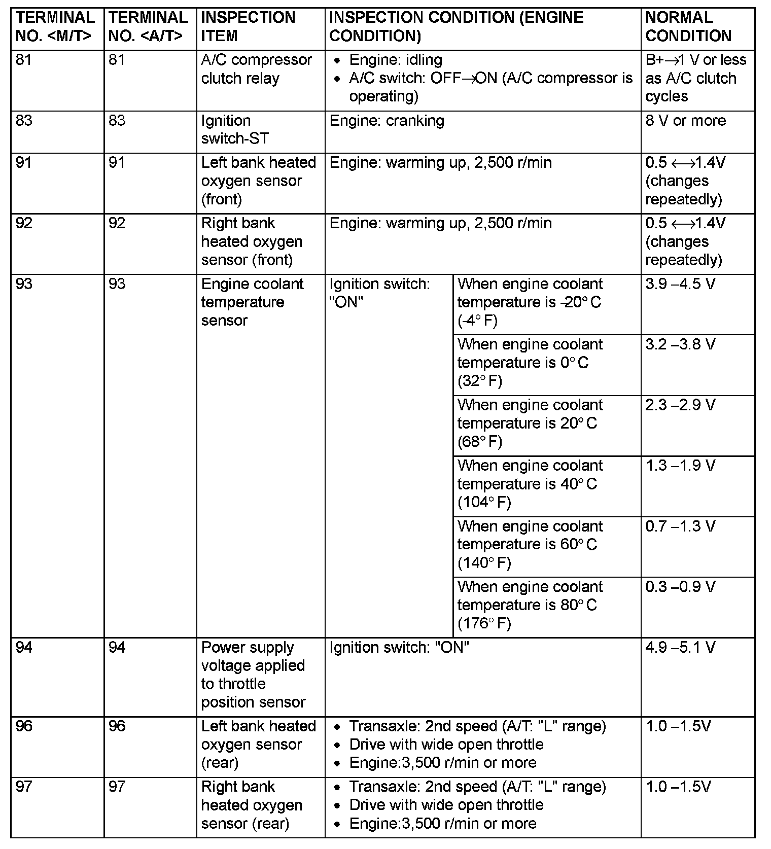 Terminal Voltage Check Chart (Part 5):