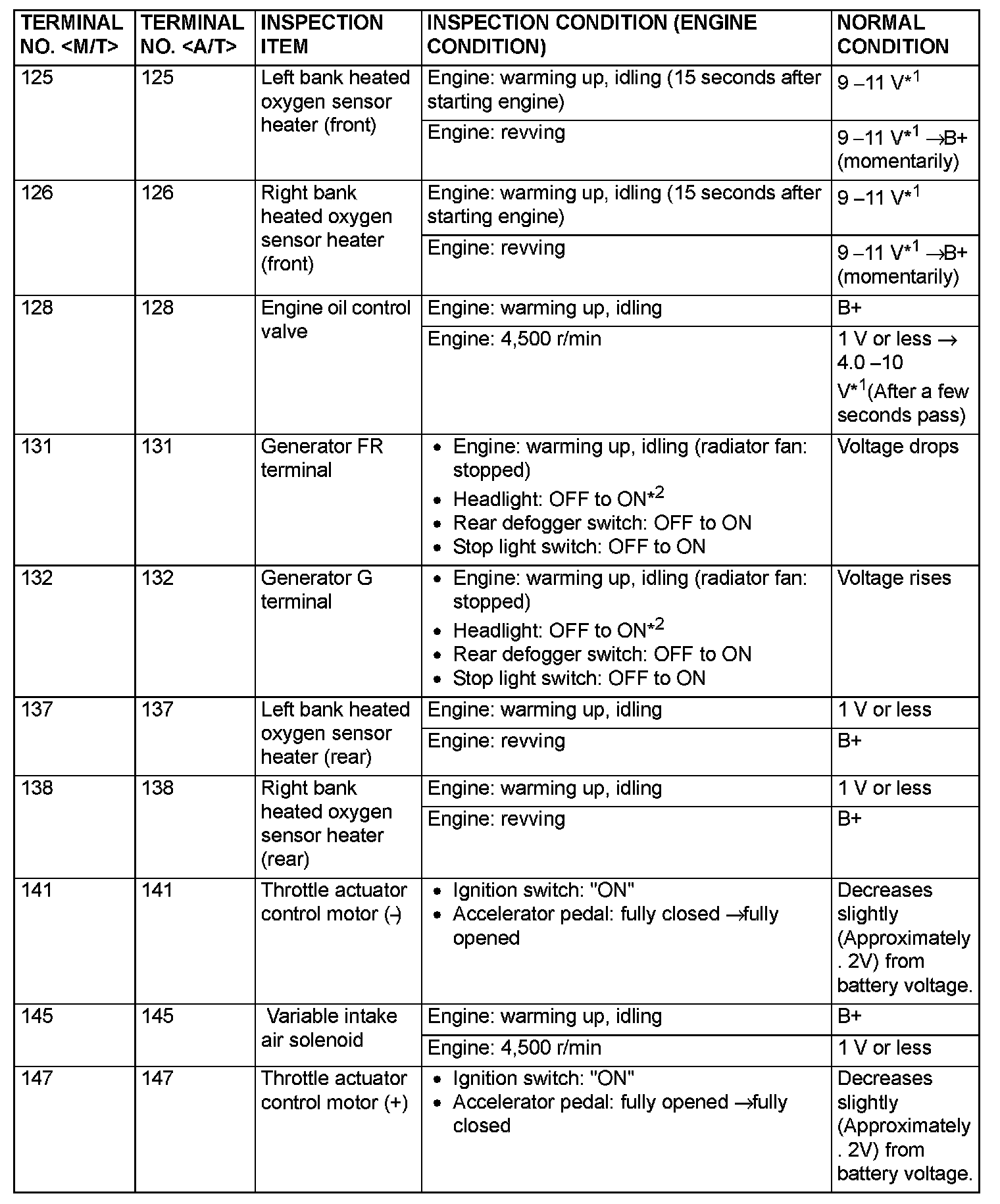 Terminal Voltage Check Chart (Part 2):