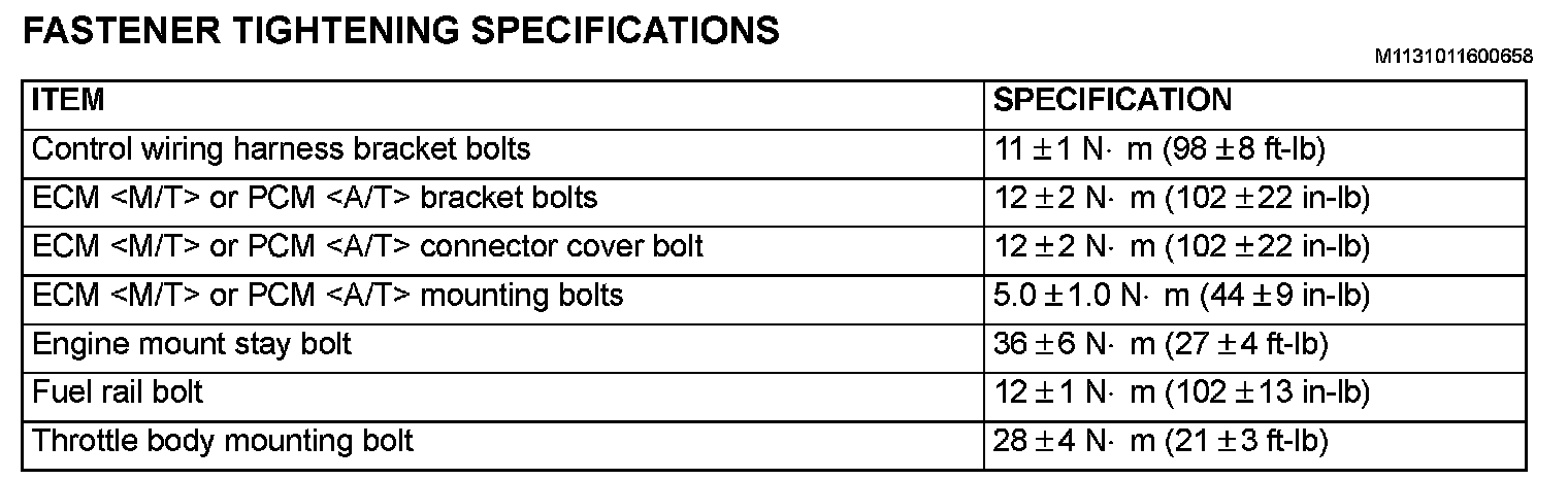 Fastener Tightening Specifications: