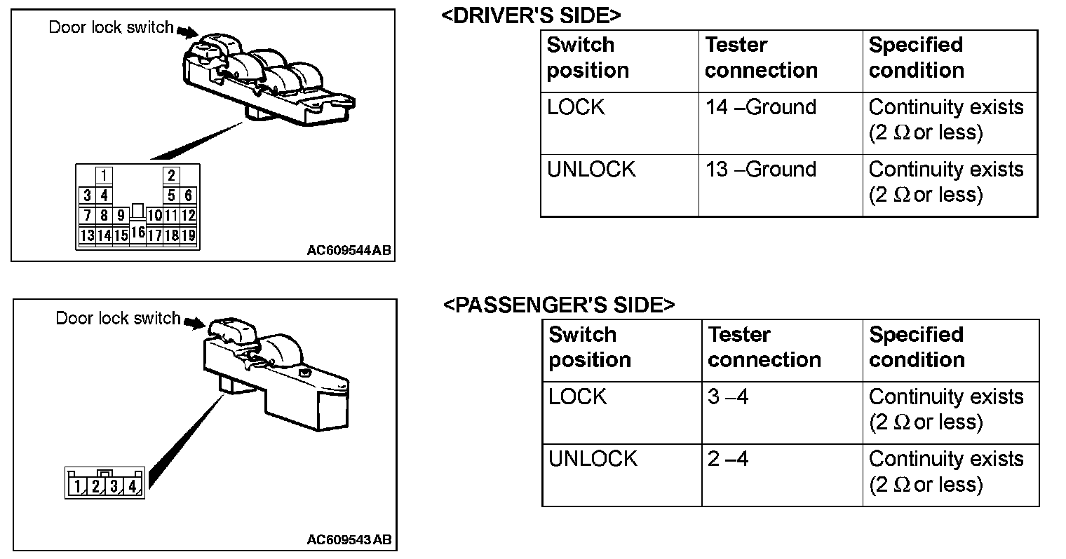 CENTRAL DOOR LOCK SWITCH CONTINUITY CHECK