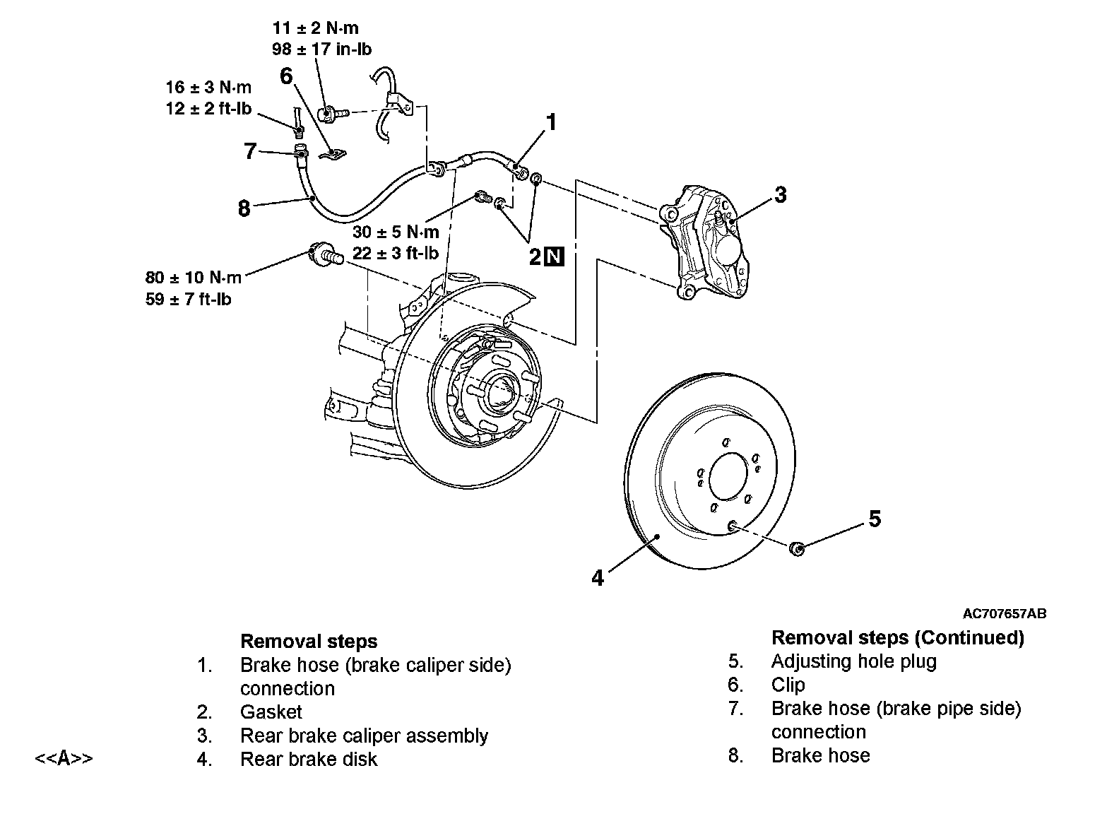 REAR DISC BRAKE ASSEMBLYREMOVAL AND INSTALLATION