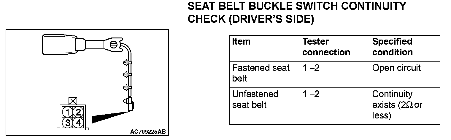 Seat Belt Buckle Switch Continuity Check (Driver's Side):