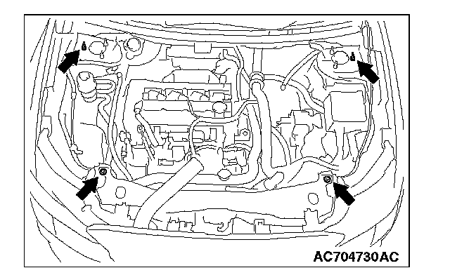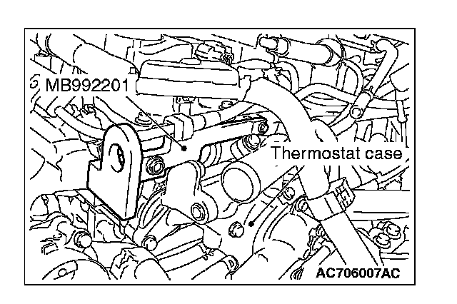 1. Remove the vacuum pipe assembly, and install the engine hanger plate (Special tool: MB992201), then tighten the bolts to the specified torque.