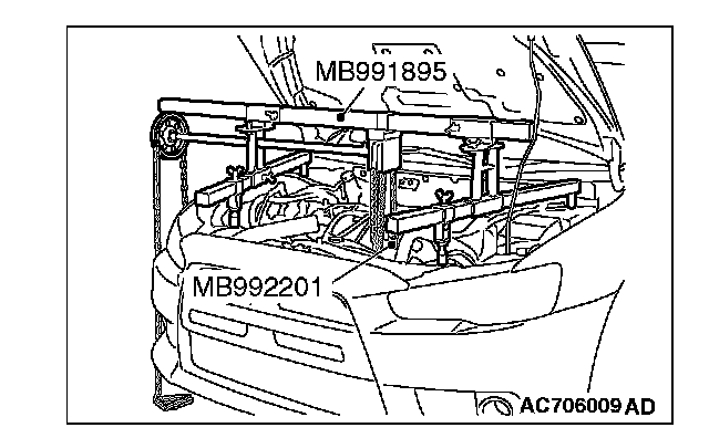 3. [Engine mechanical hanger (special tool MB991895) is used]