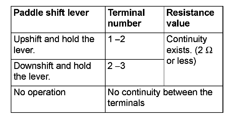 1. Check the continuity between the paddle shift switch connector terminals.
