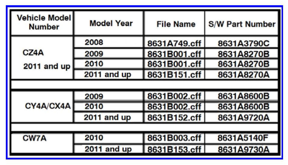 If the vehicle is a 2008 Lancer Evolution, install 8631B001.cff instead of 8631A749.