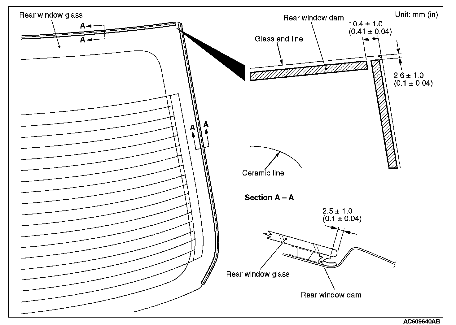 4. Install the rear window upper dam and side dam to the rear window glass.
