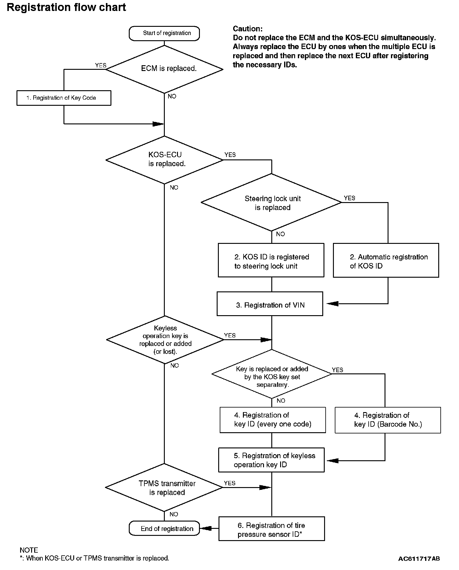 CAUTION: Do not replace the engine control module and KOS-ECU at the same time. When replacing several ECUs, always replace one ECU at a time, register the necessary IDs in it, and then replace the next ECU.