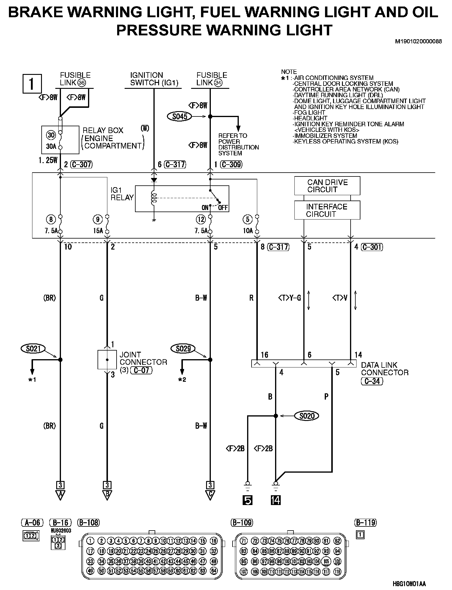 Brake Warning Light, Fuel Warning Light And Oil Pressure Warning Light (Part 1):