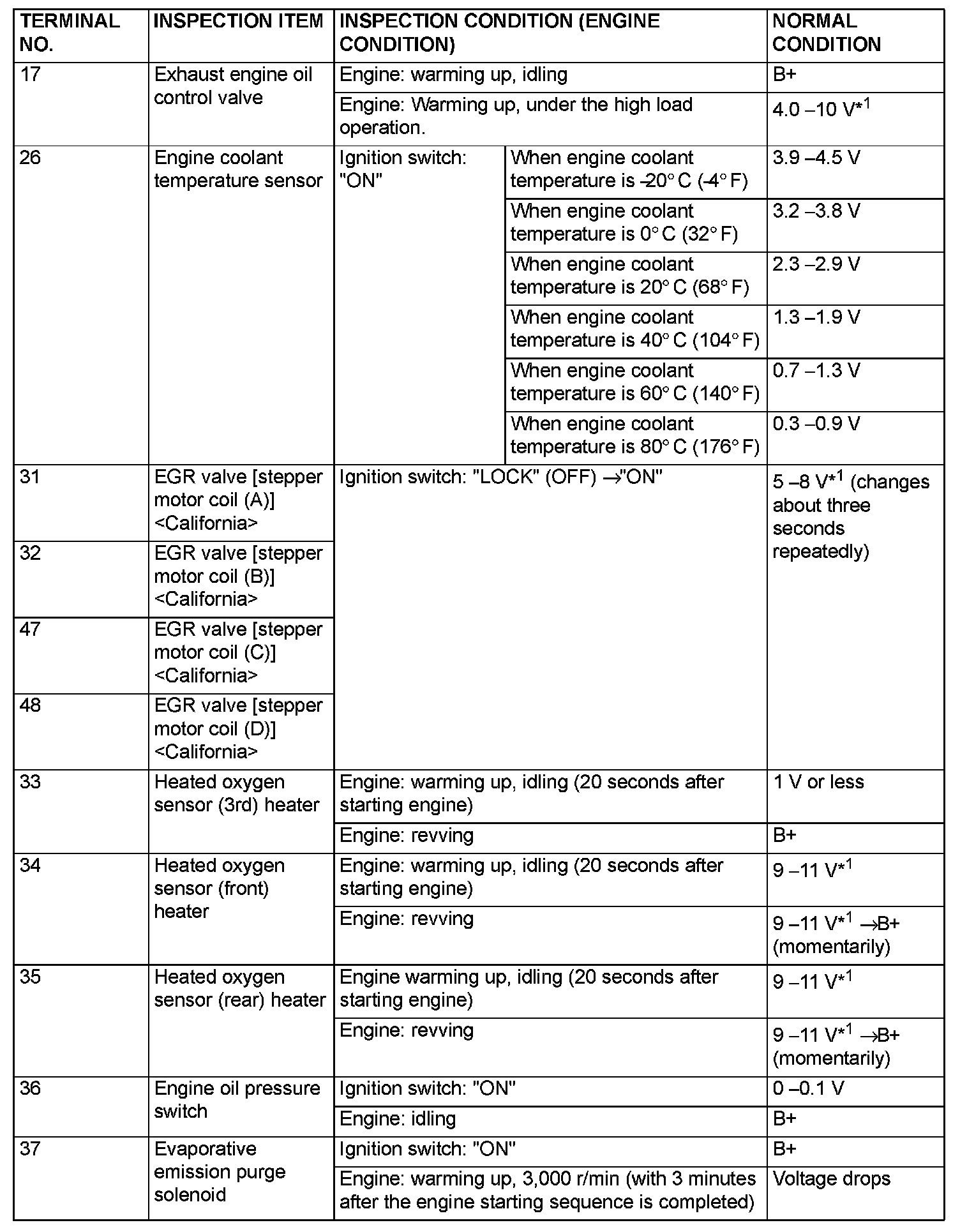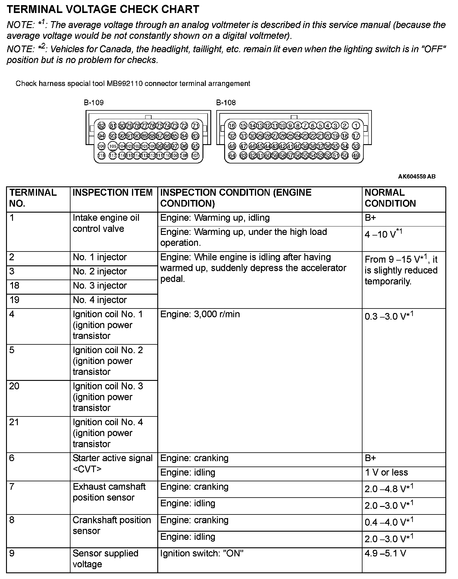 Terminal Voltage Check Chart (Part 1):