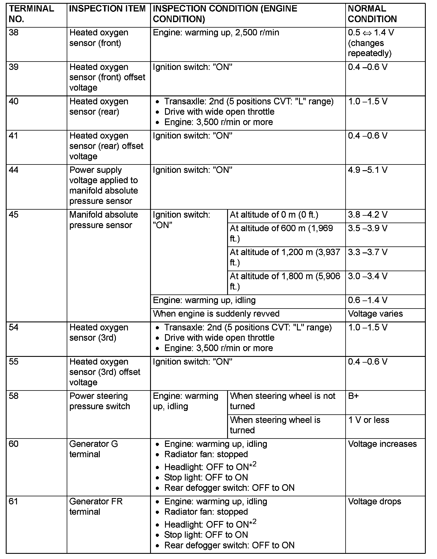 Terminal Voltage Check Chart (Part 2):