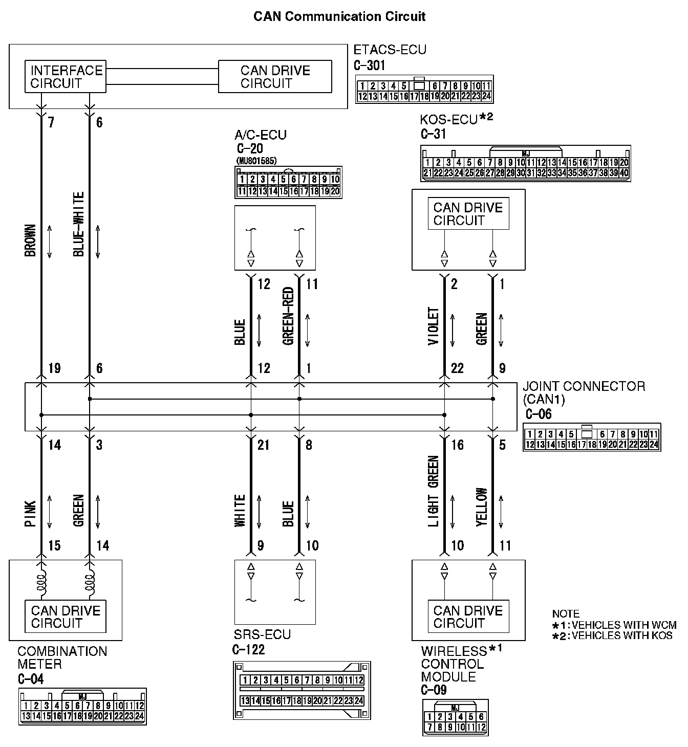 - Malfunction of the connector [joint connector (CAN1), WCM connector improperly connected]