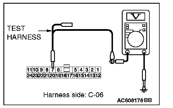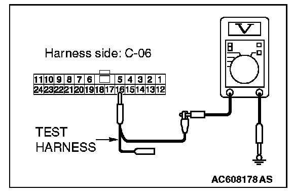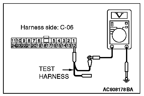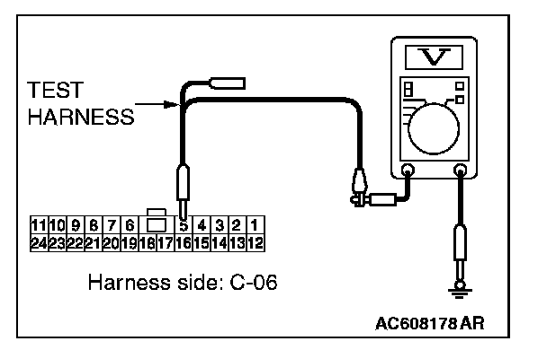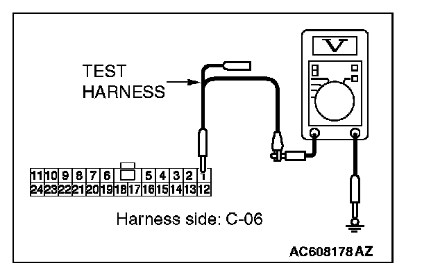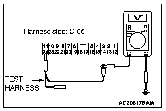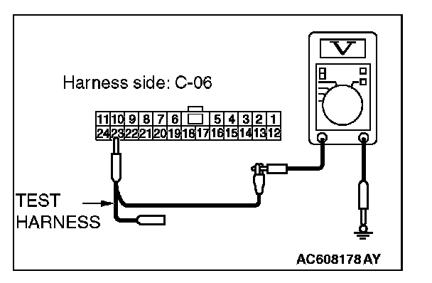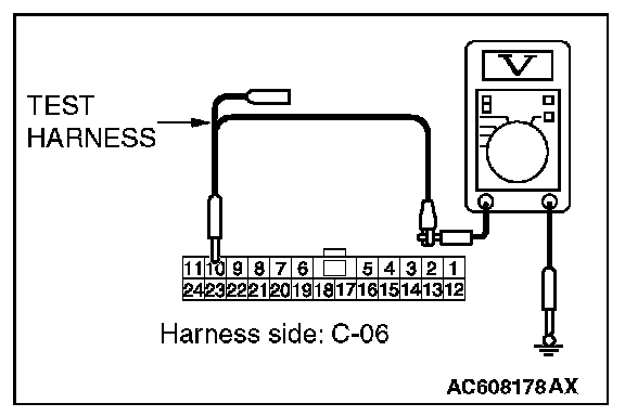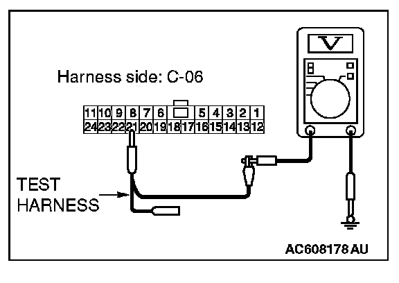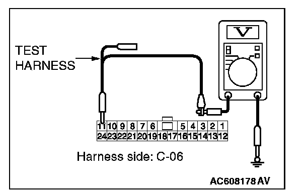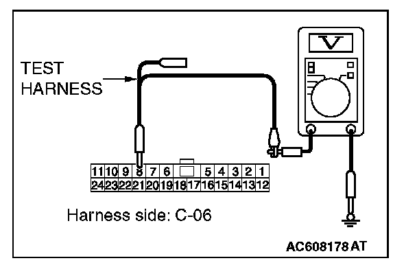 STEP 23. Check the wiring harness between joint connector (CAN1) C-06 and ETACS-ECU connector C-301 for a short to power supply. Measure the voltage at joint connector (CAN1) C-06.