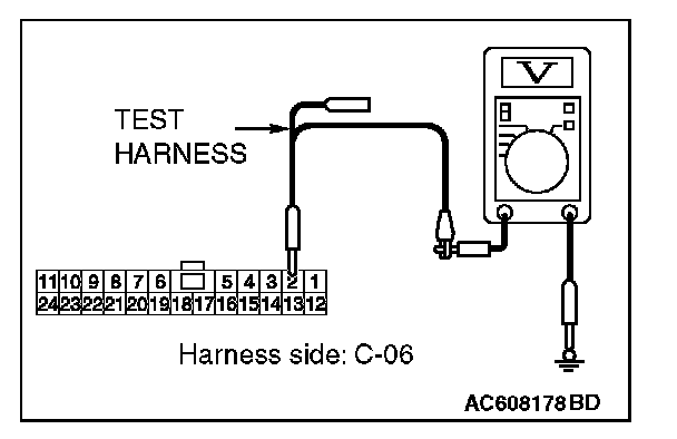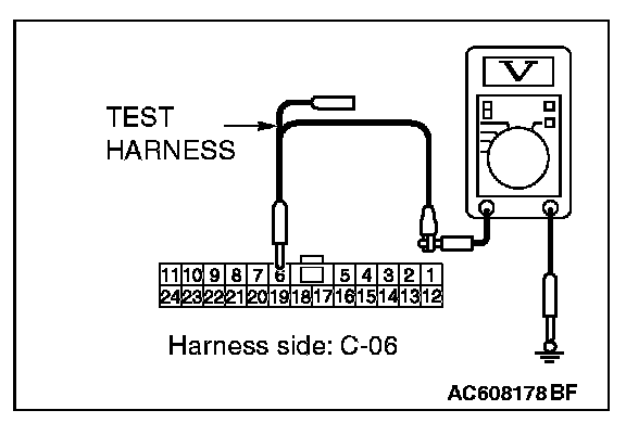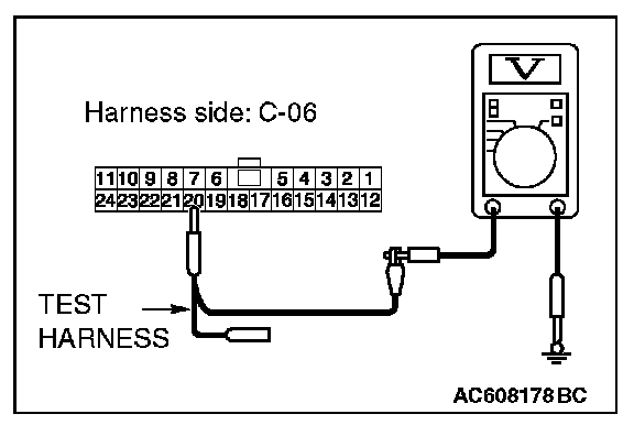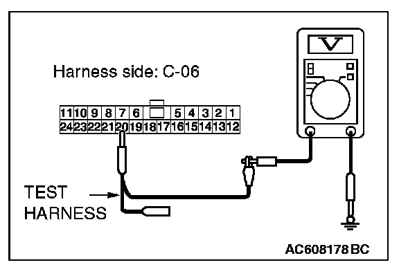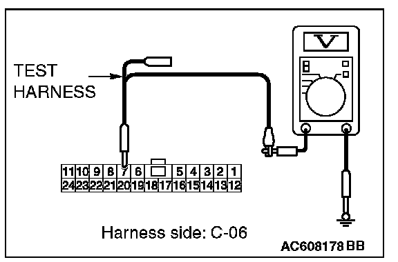 STEP 19. Check the wiring harness between joint connector (CAN1) C-06 and A/C-ECU connector C-20 for a short to power supply. Measure the voltage at joint connector (CAN1) C-06.