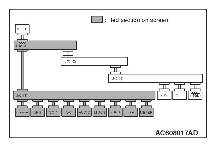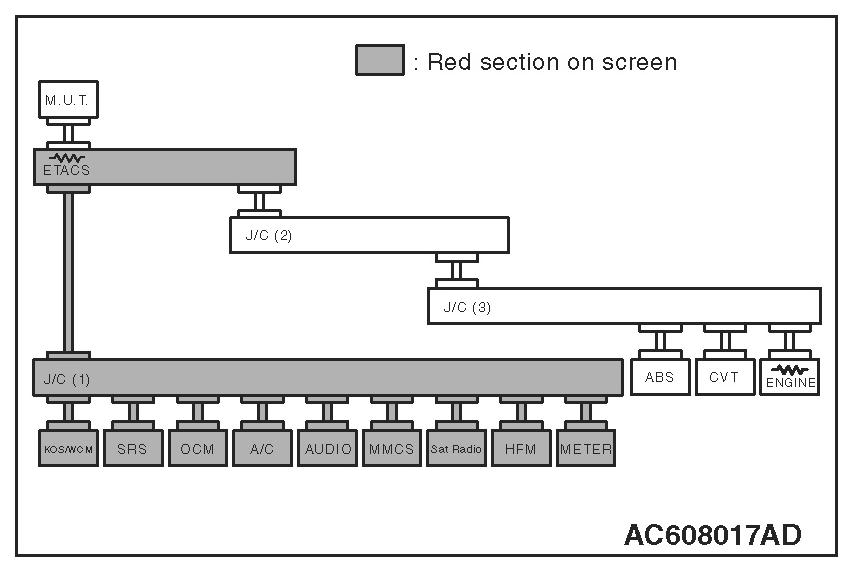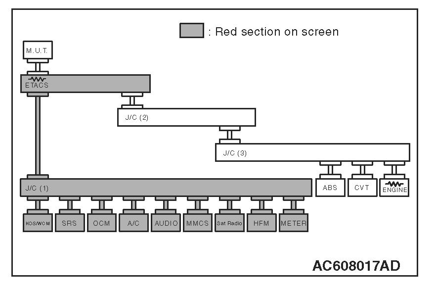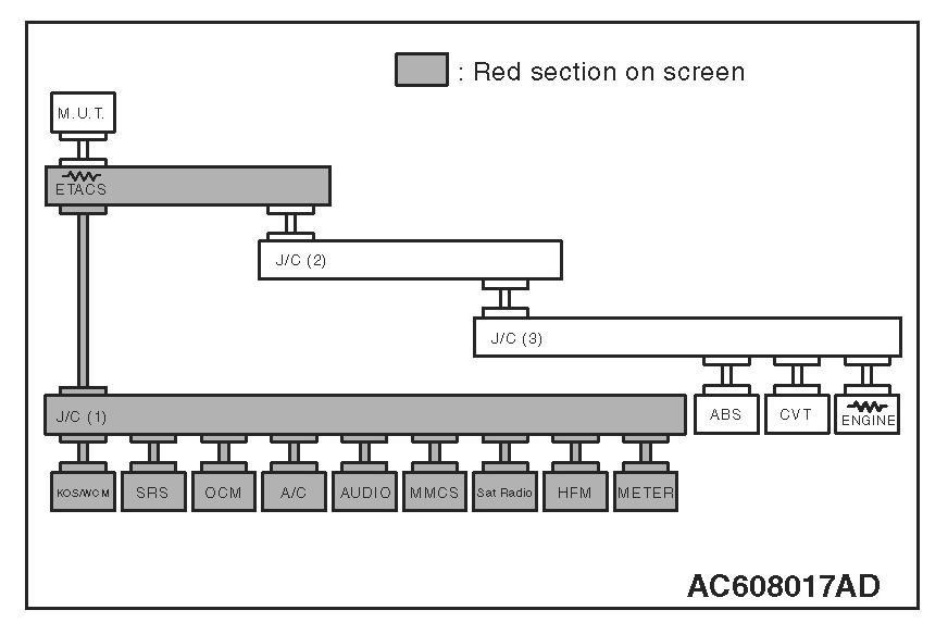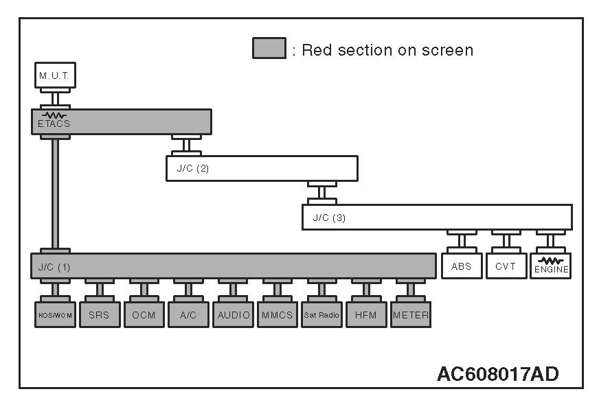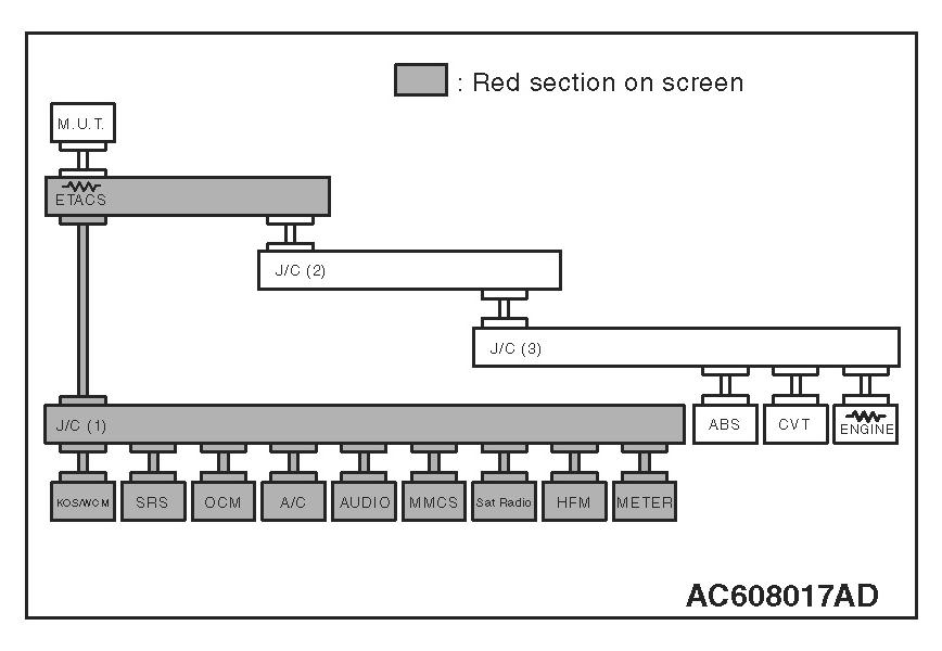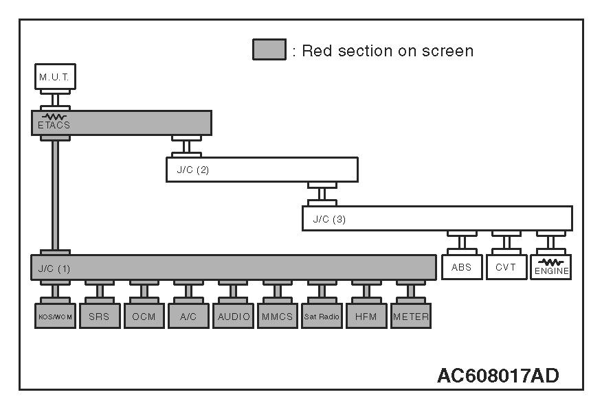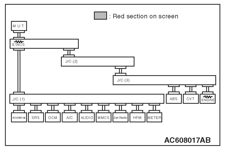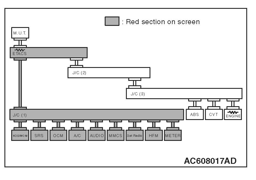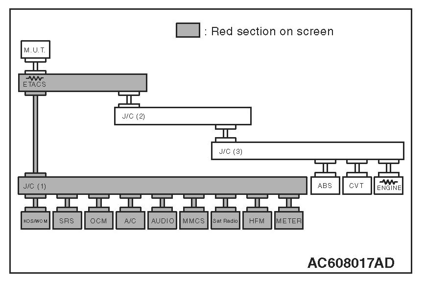 3. Diagnose CAN bus lines, and check if the scan tool MB991958 screen is as shown in the figure.