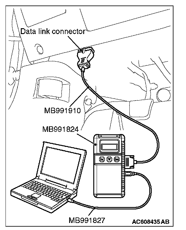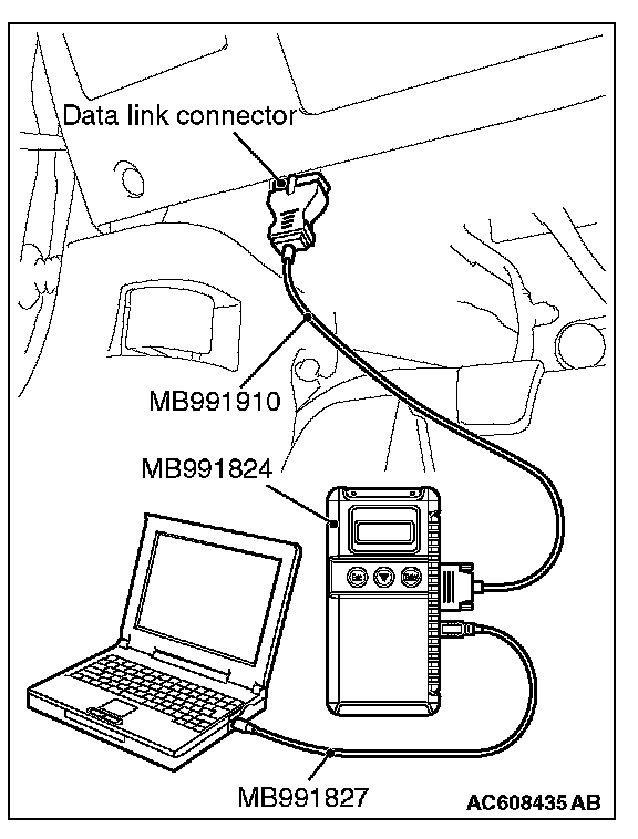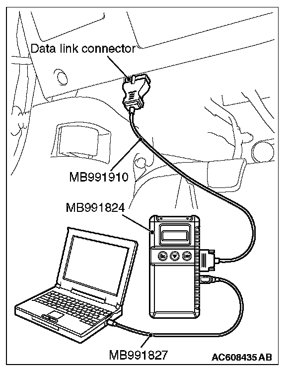 1. Connect scan tool MB991958 to the data link connector.