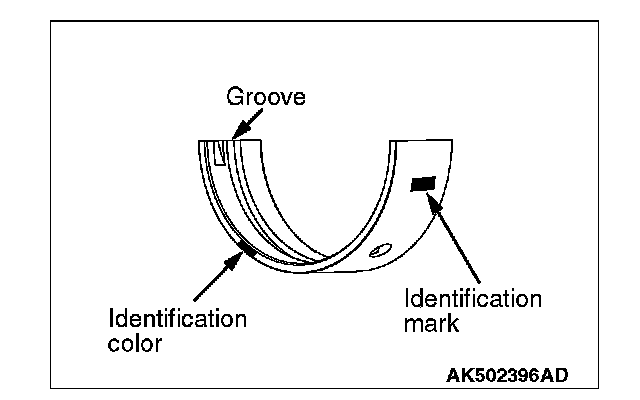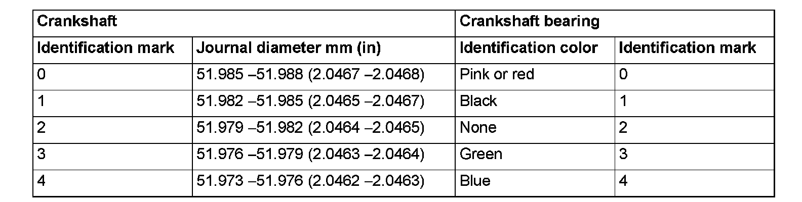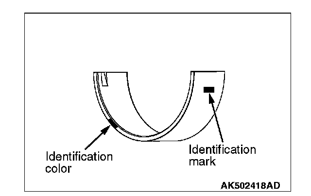 When replacing the crankshaft bearing upper, select a bearing with the size corresponding to the crankshaft journal diameter in the table below.