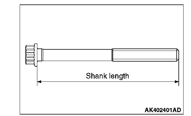 Make sure that the underhead length of the bolt is at or below the limit before installing the crankshaft bearing cap bolt. If the length exceeds the limit, replace the bolt with a new one.