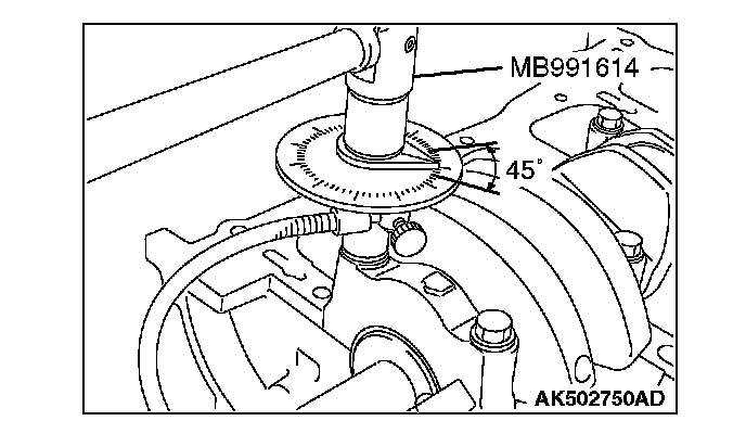 Use special tool MB991614 to tighten bolts 45° according to the tightening order.