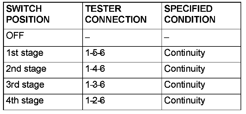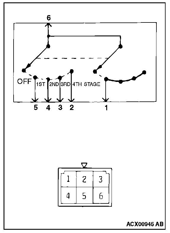 This figure illustrates a complex switch. The continuity between terminals at each position is as indicated in the table below.